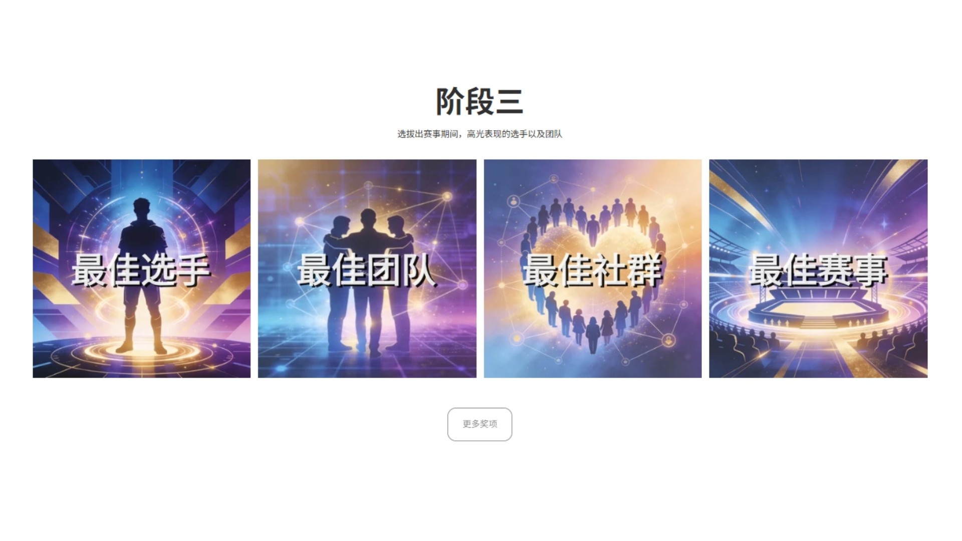 由参与玩家提名并选拔出本次活动中表现杰出的参与者,授予「最佳选手」、「最佳团队」、「最佳社群」等荣誉头衔。